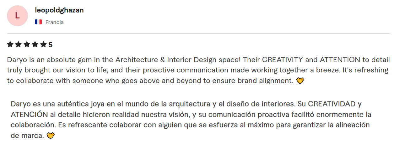Las reseñas que compartimos aquí reflejan nuestro compromiso con la calidad, la atención al detalle y la satisfacción de quienes confían en nosotros para materializar sus ideas. Queremos que estas palabras sean una muestra de la dedicación y profesionalismo que ponemos en cada visualización y diseño.